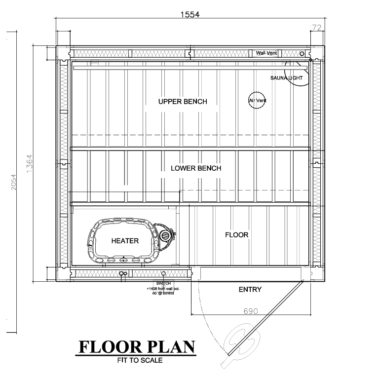 Click here for full floor plan and here for manual for SAWO Scandia 4.5kw Sauna stove included here